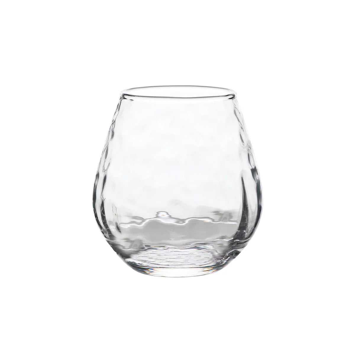 This subtly shimmering and stemless wine glass from Juliska is crafted of sturdy mouth-blown glass to celebrate life's simple pleasures every day. Dishwasher safe.