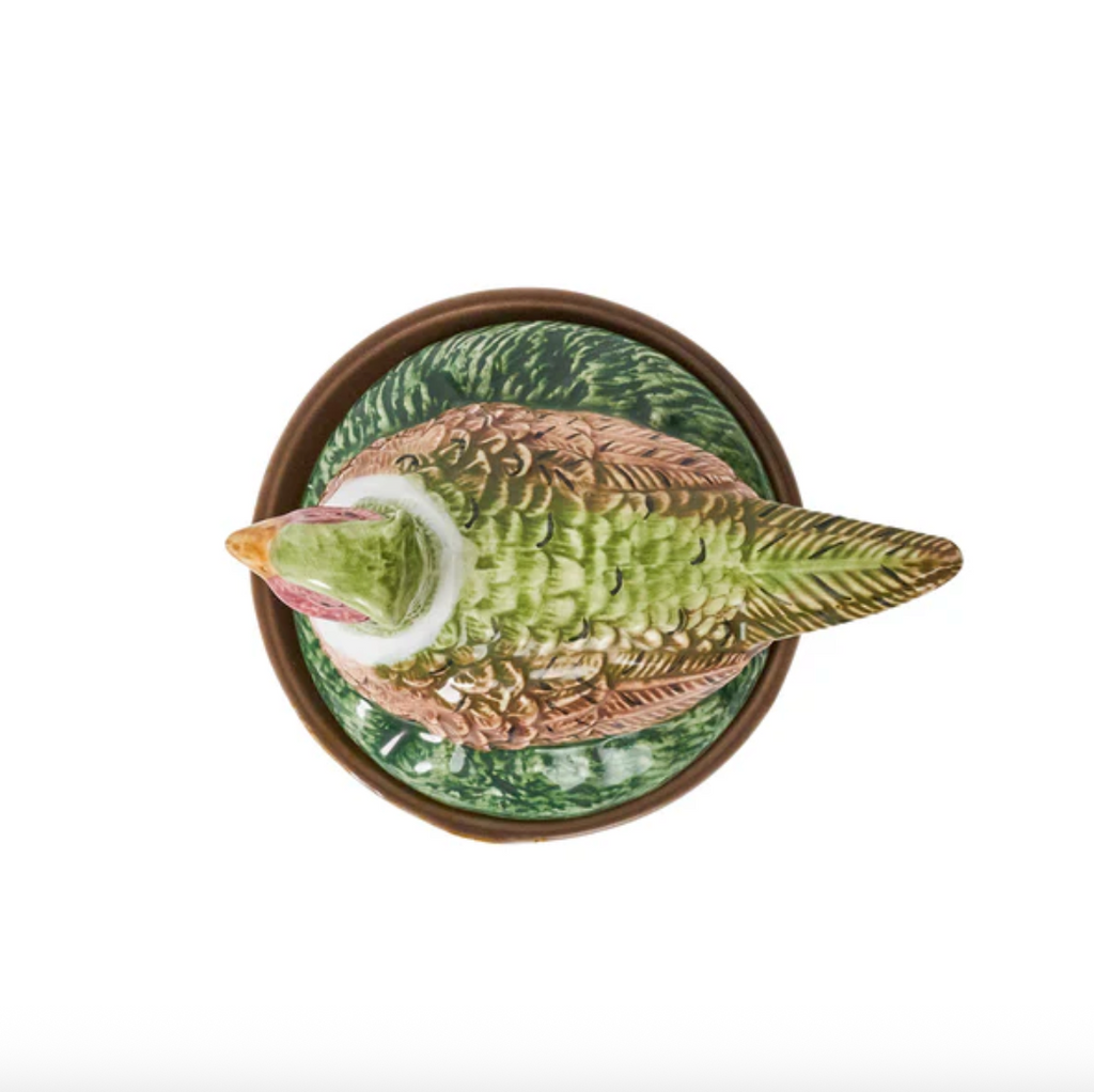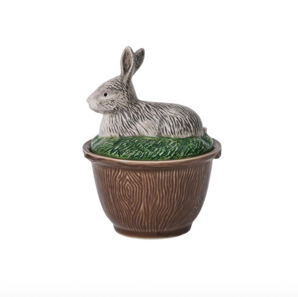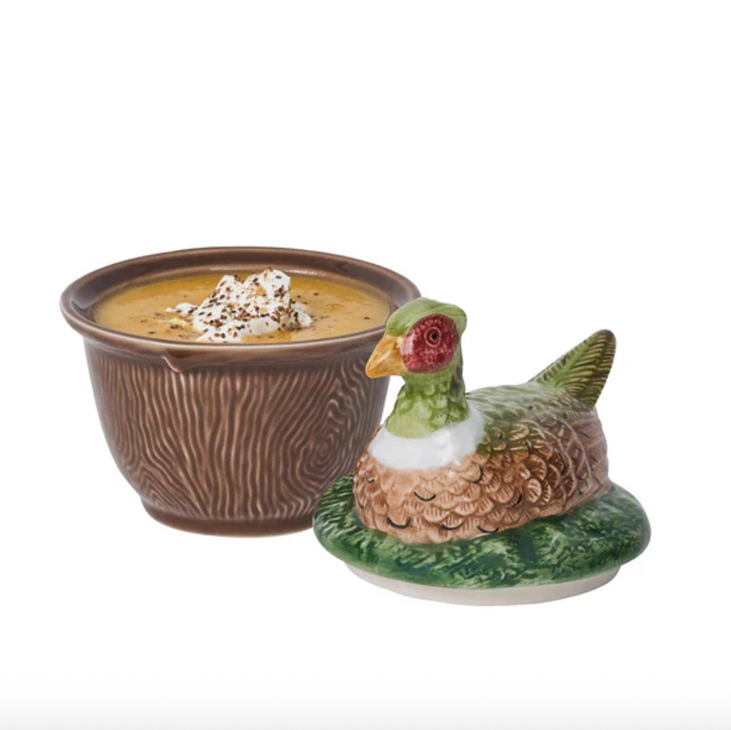 The irresistible fauna and fowl of the autumn woods capture the imagination and add enchantment to your fall tablescapes with beautifully sculpted likenesses hand-painted in Portugal, with intricate detail, atop ceramic bowls featuring a rich woodgrain motif. Rabbit, Pheasant, Deer and Duck are ideal for serving soups, desserts, or condiments—and are always ready to party. Stoneware base is food-safe and dishwasher, microwave, oven and freezer safe. Earthenware lid is handwash only.