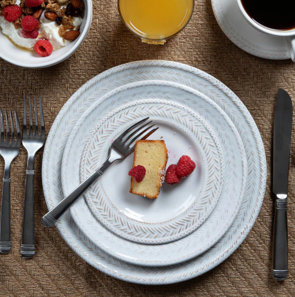 From Juliska's Le Panier Collection - With Juliska's signature whitewash glaze and a traditional French basket-weave motif, this plate easily mixes into other collections. Oven, microwave, freezer and dishwasher safe.