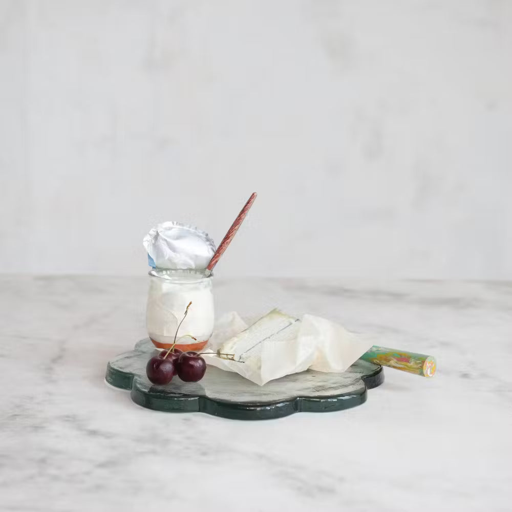 Glass scalloped serving tray perfect for appetizers, snacks or drinks.