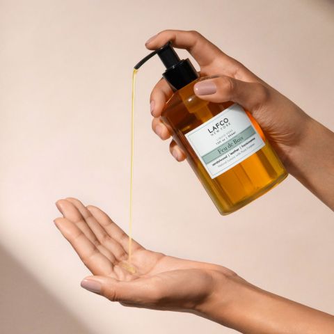 Olive-oil based, LAFCO sulfate-free liquid soap regenerates, protects, and moisturizes. It gently cleanses while leaving its renowned incense fragrance. Fresh pine falls on curls of sandalwood and rare Virginia cedarwood and smoky leather accords blend with frankincense to create Feu de Bois. Lemon and spicy lily notes fall into watery blue lotus and sea grass and golden amber and cool sea spray evoke endless summer days in Sea & Dune.
