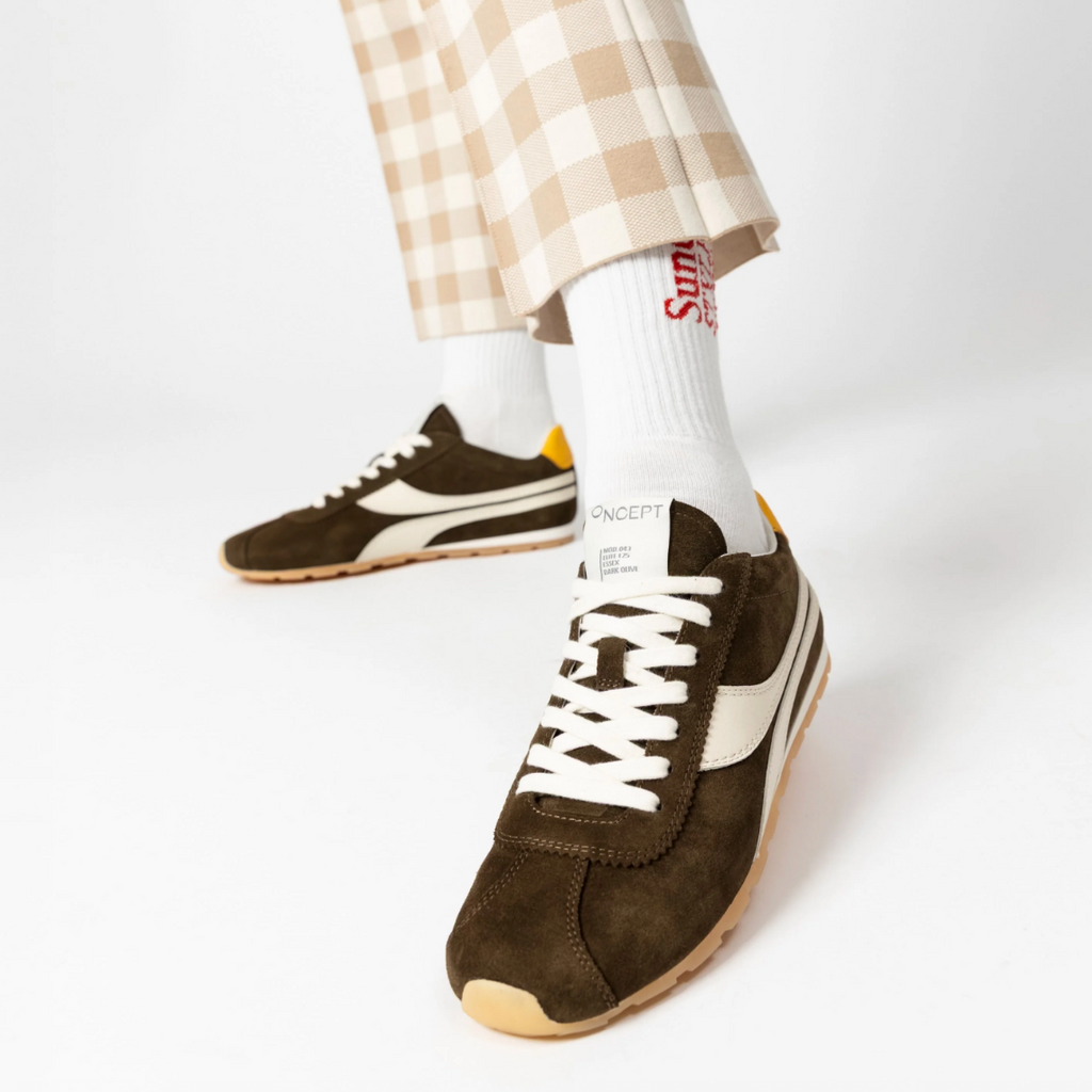 Oncept's ultra-lightweight take on a classic ballet flat, reimagined with a sleek sneaker-inspired silhouette. Crafted from luxuriously soft suedes for a sophisticated yet relaxed look. Molded removable sock footbed.