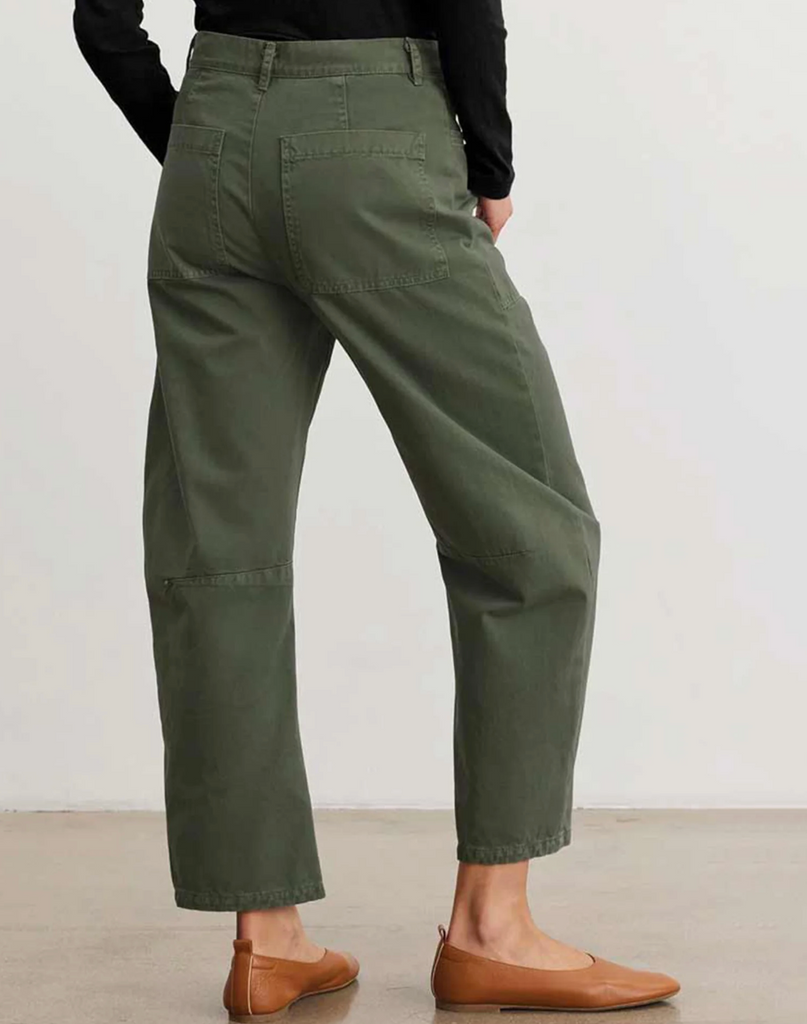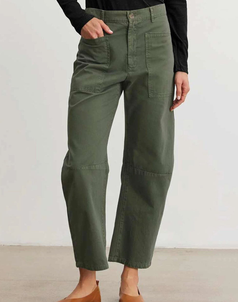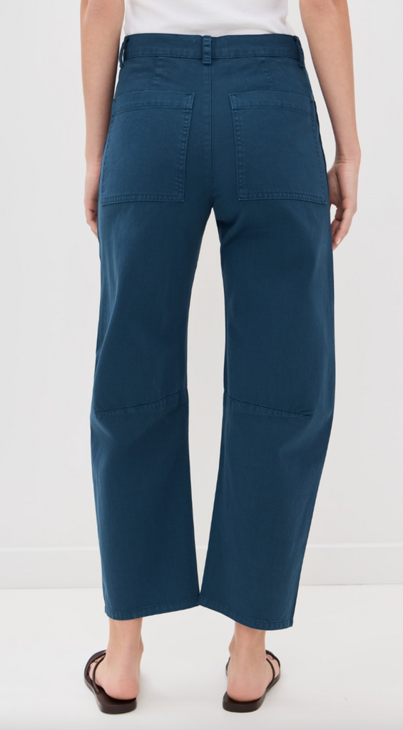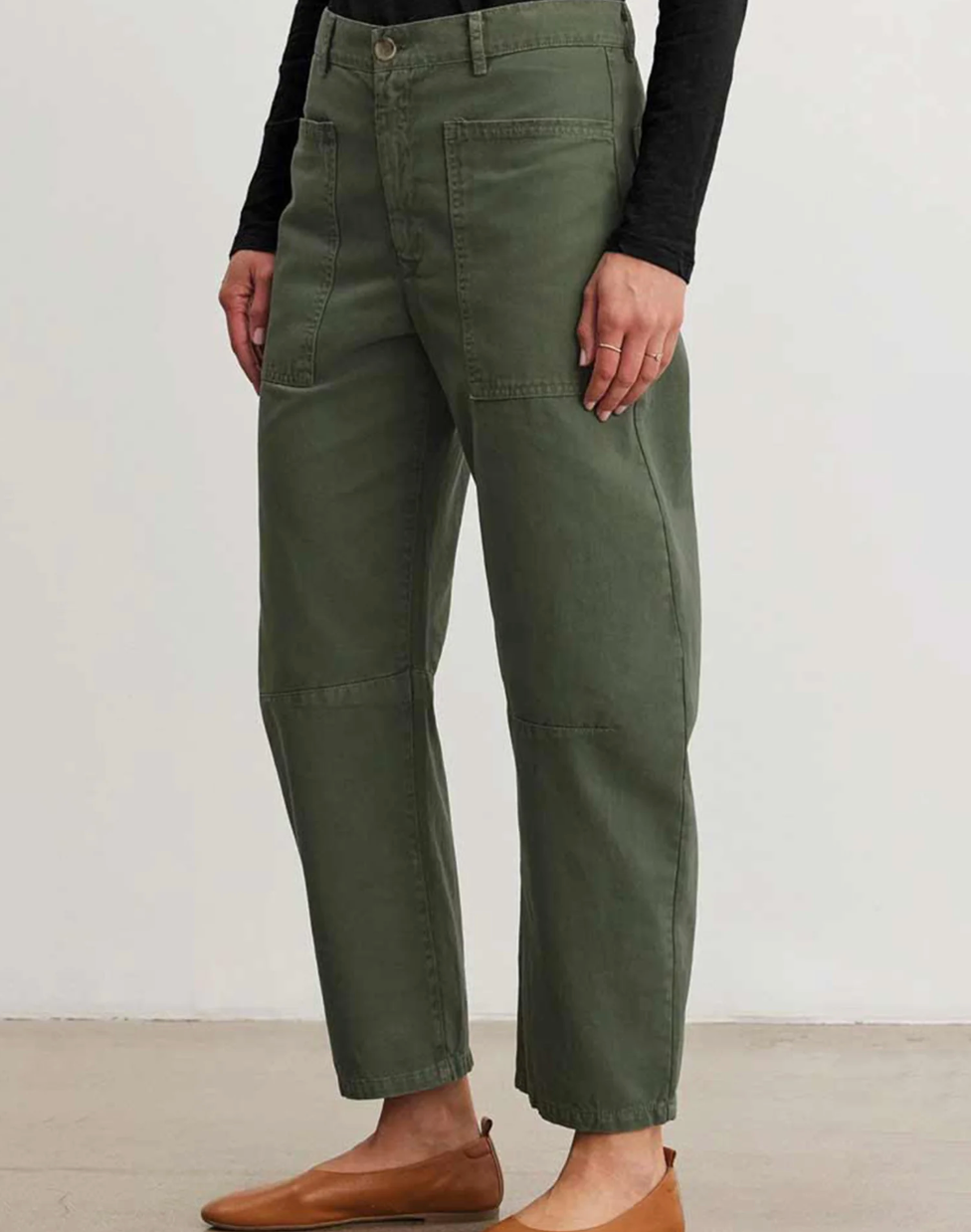 Crafted from a sturdy cotton twill, this casual trouser has a modern line with a subtle, vertical seam at the knee that lends a cool curved silhouette. Utilitarian-inspired patch pockets on the front and rear.