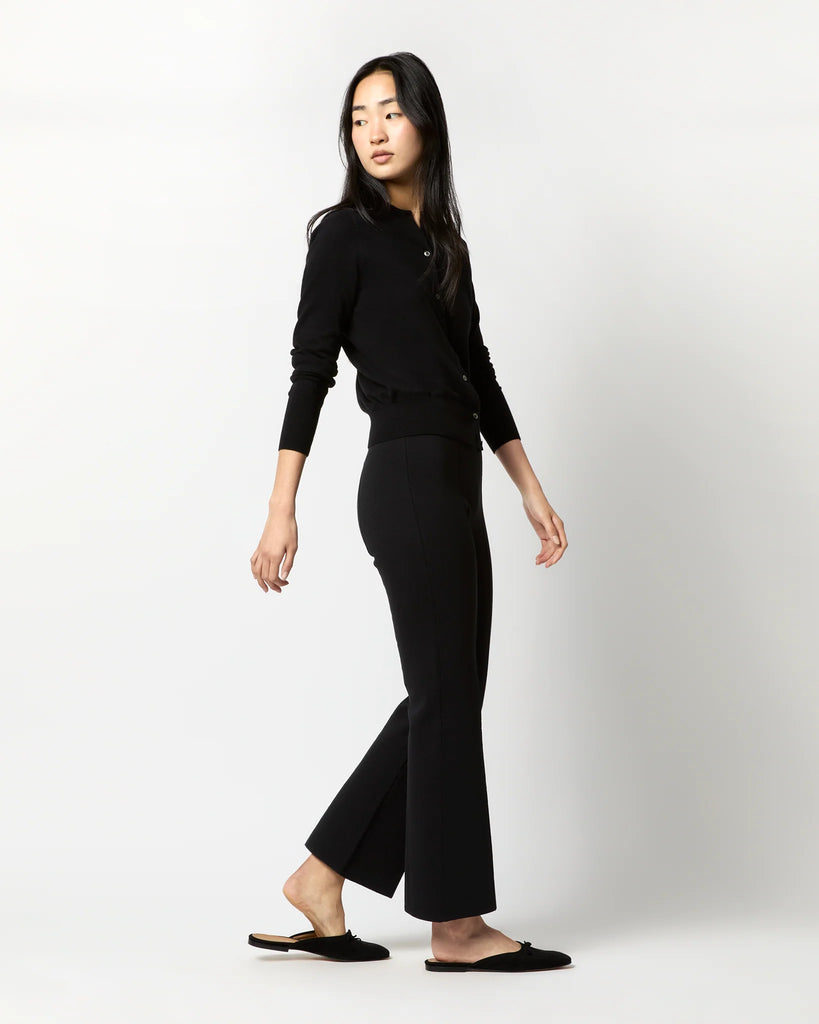 The Lara is Ann Mashburn's latest add to our pull-on pant family — think of her as a souped-up, heavier-weight take on the Faye, with a fully fashioned, sweater-knit construction in beefy-yet-fine Supima cotton plaited with Lycra that keeps its shape. Almost compressive, but in a good way... it kind of holds you in. We wear-tested these at HQ, and all the heel-sitters and curler-uppers on our team were especially impressed with the way the knit recovered even after repeated wears and washes. And while each pair has the same easy, elastic waistband as the other pull-on styles, Ann added a flattering center seam down the front of each leg... a detail that pushes it into real pants territory. 60% pima cotton/40% lycra.