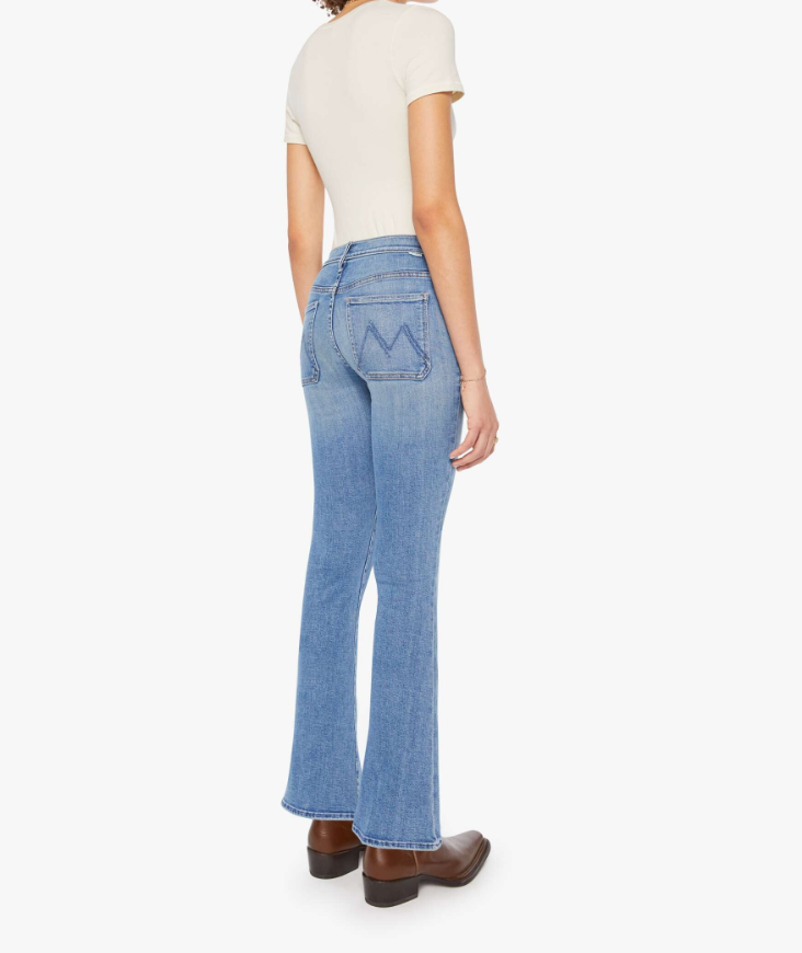 On a roll. This cult-favorite flare has a mid rise, zip fly, patch pockets, a 31-inch inseam and a clean hem. Cut from stretch denim, Poppin' Wheelies is a mid-blue with whiskering and fading at the knees.