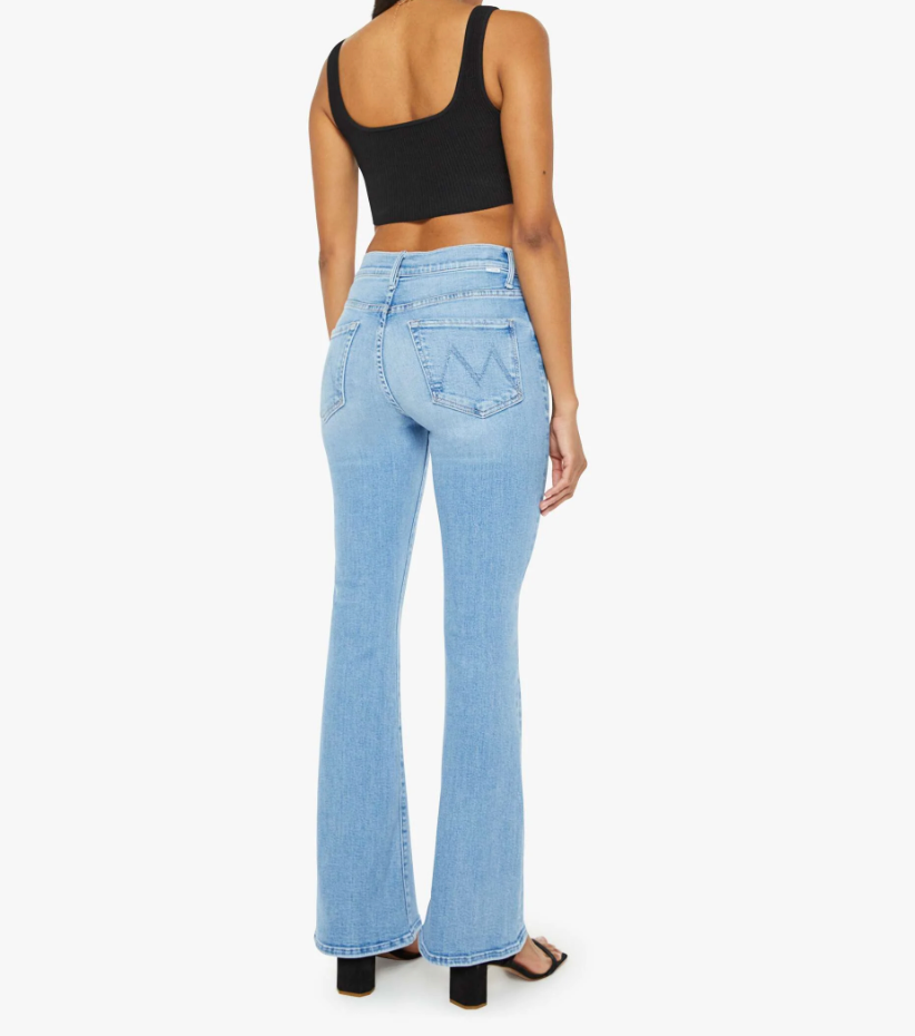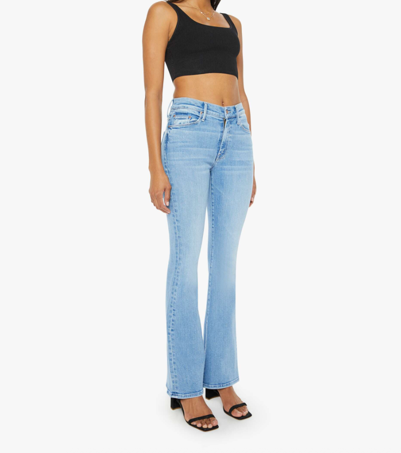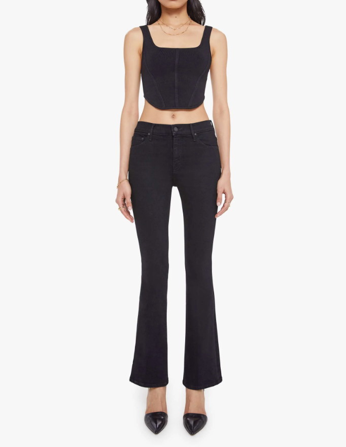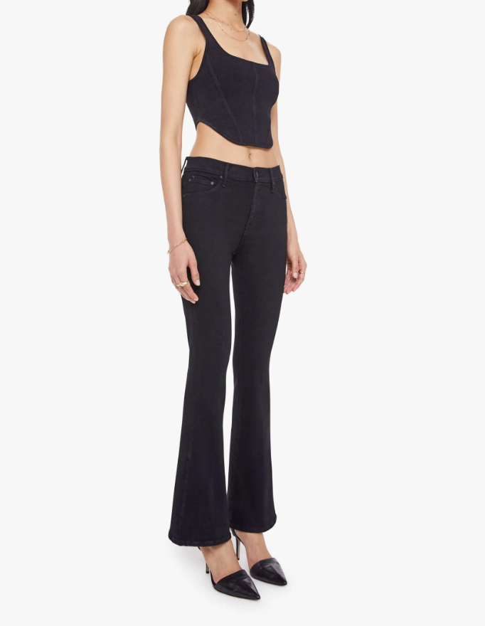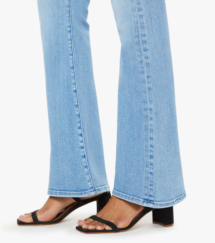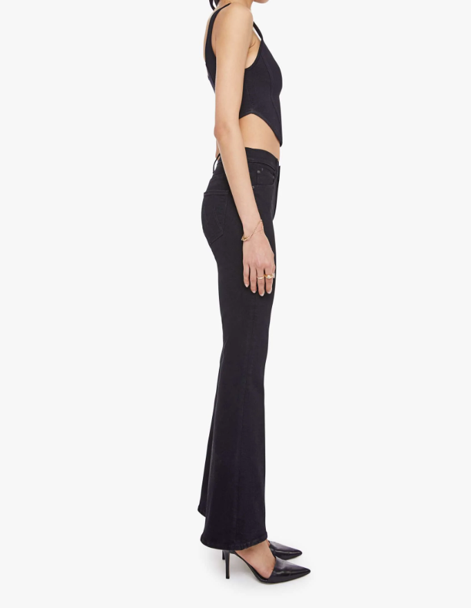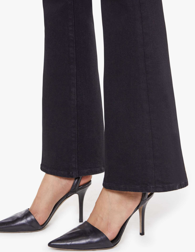 This cult-favorite flare jean has a mid rise with a 31" inseam and a clean hem. Made from stretch denim, Blessing in Disguise is a mid-blue wash with subtle whiskering and fading at the knees. Nighty Night is is a dark black with tonal hardware, and Layover is a mid-blue wash with subtle whiskering and fading throughout.
