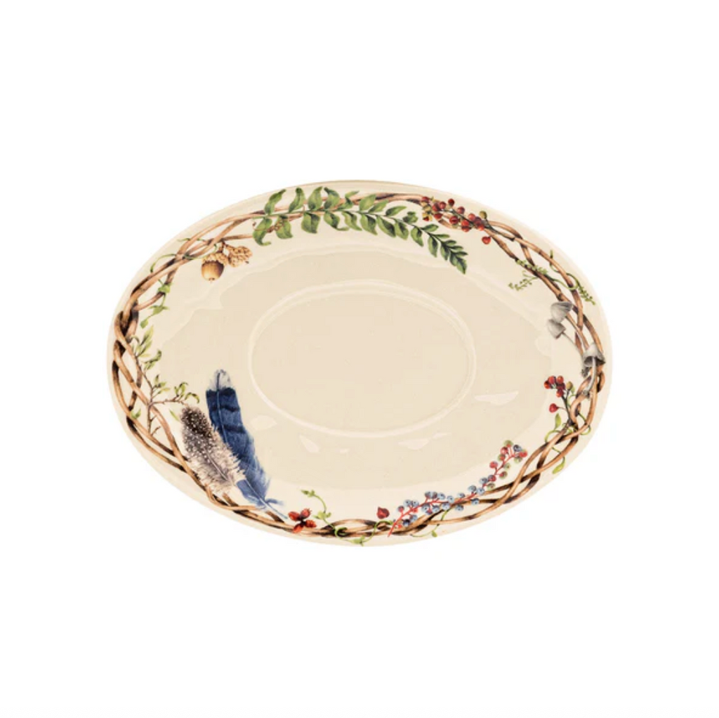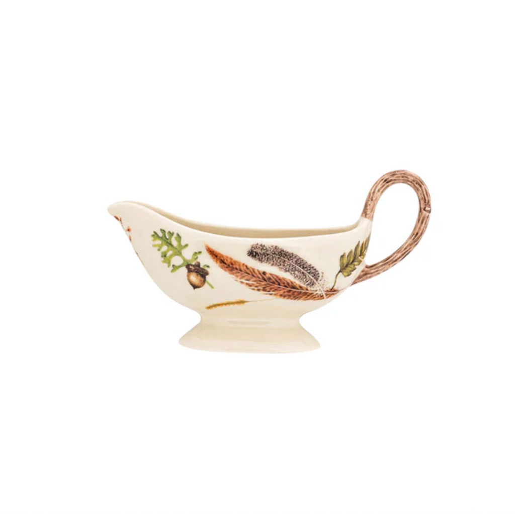 The Forest Walk sauce boat is perfectly suited to house your gravies and decadent sauces. With a gorgeous faux-wood handle and delightful woodland accents scattered across both pieces, this set will serve as a mini centerpiece anywhere it lands on the table. Ceramic, made in Portugal.