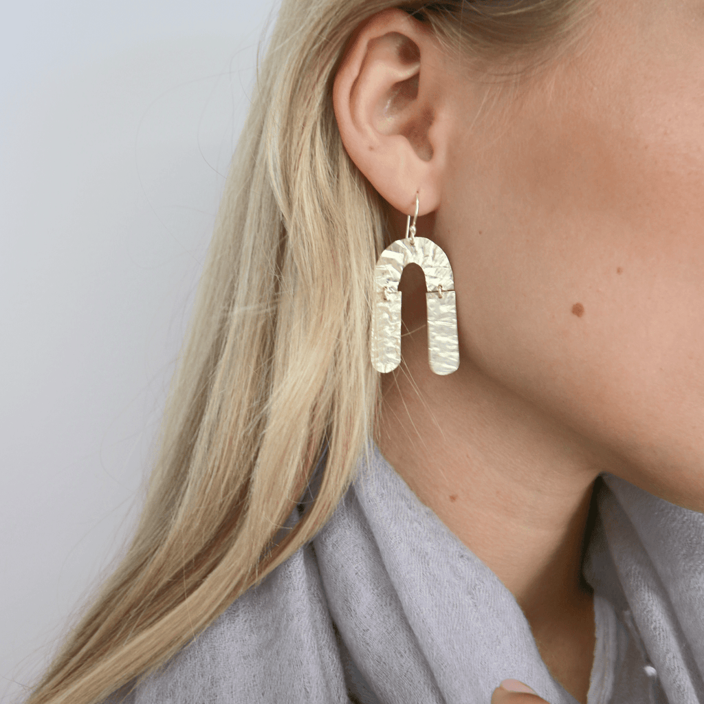Discover Erin Gray's Cabo Moon Earring, featuring a playful and distinctive design. These drop earrings are crafted with 24k gold layered over sterling silver. Incredibly lightweight.