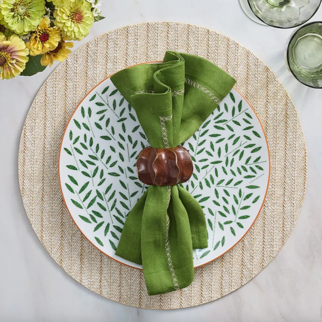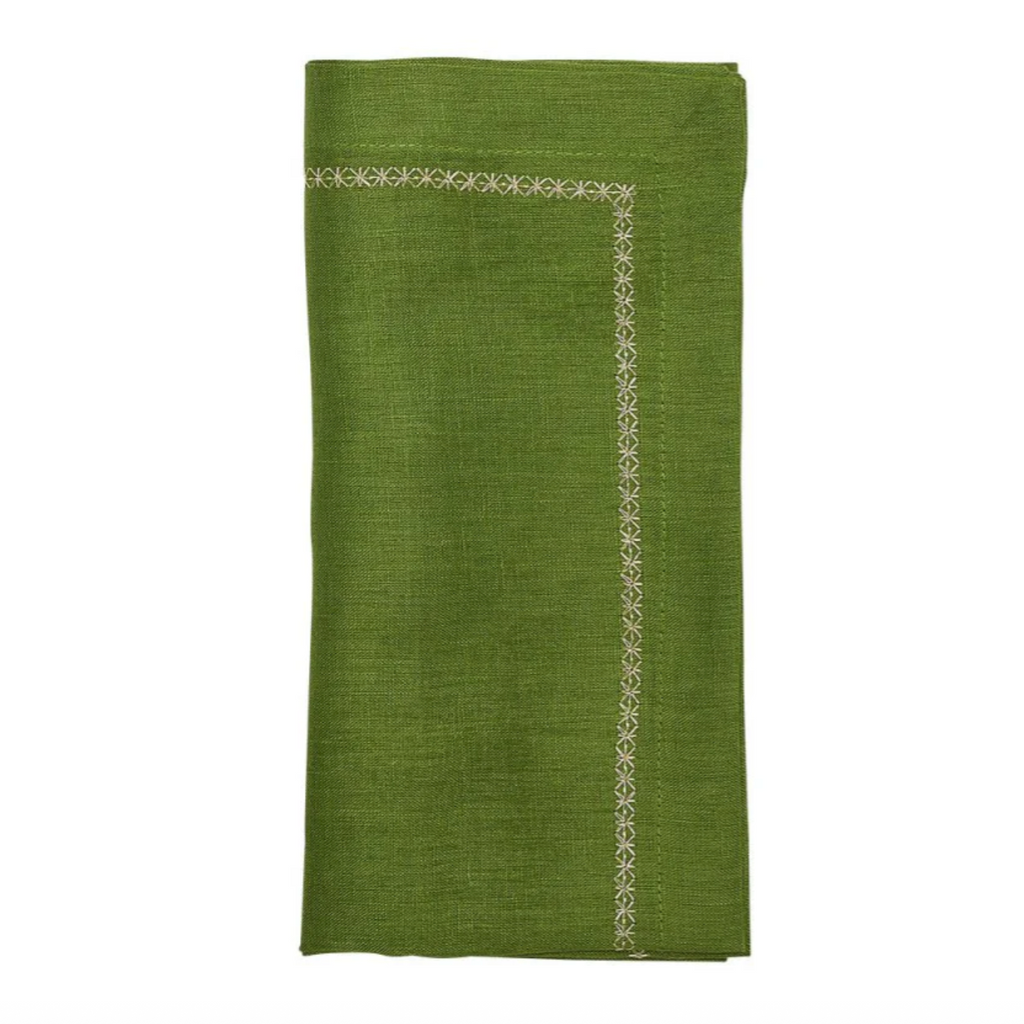 A lovely palette of color for your table - this 100% yarn-dyed linen napkin features a delicate embroidered star-shaped border. Elegantly simple.