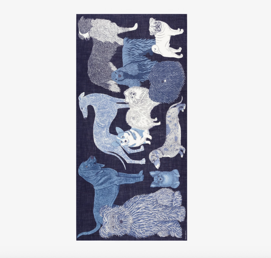 This collection of oversized wool scarves is new to Inoui Editions. The 39.4" x 74.8" oblong, wool scarf is soft and ideal for winter, and has the special feature of being washable. All the dogs are depicted beautifully here.