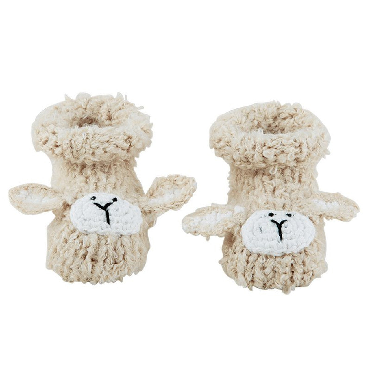 The perfect newborn gift is here with these adorable, creamy-colored lamb knit booties for baby boy or girl. Great for keeping baby warm and stylish. Acrylic.